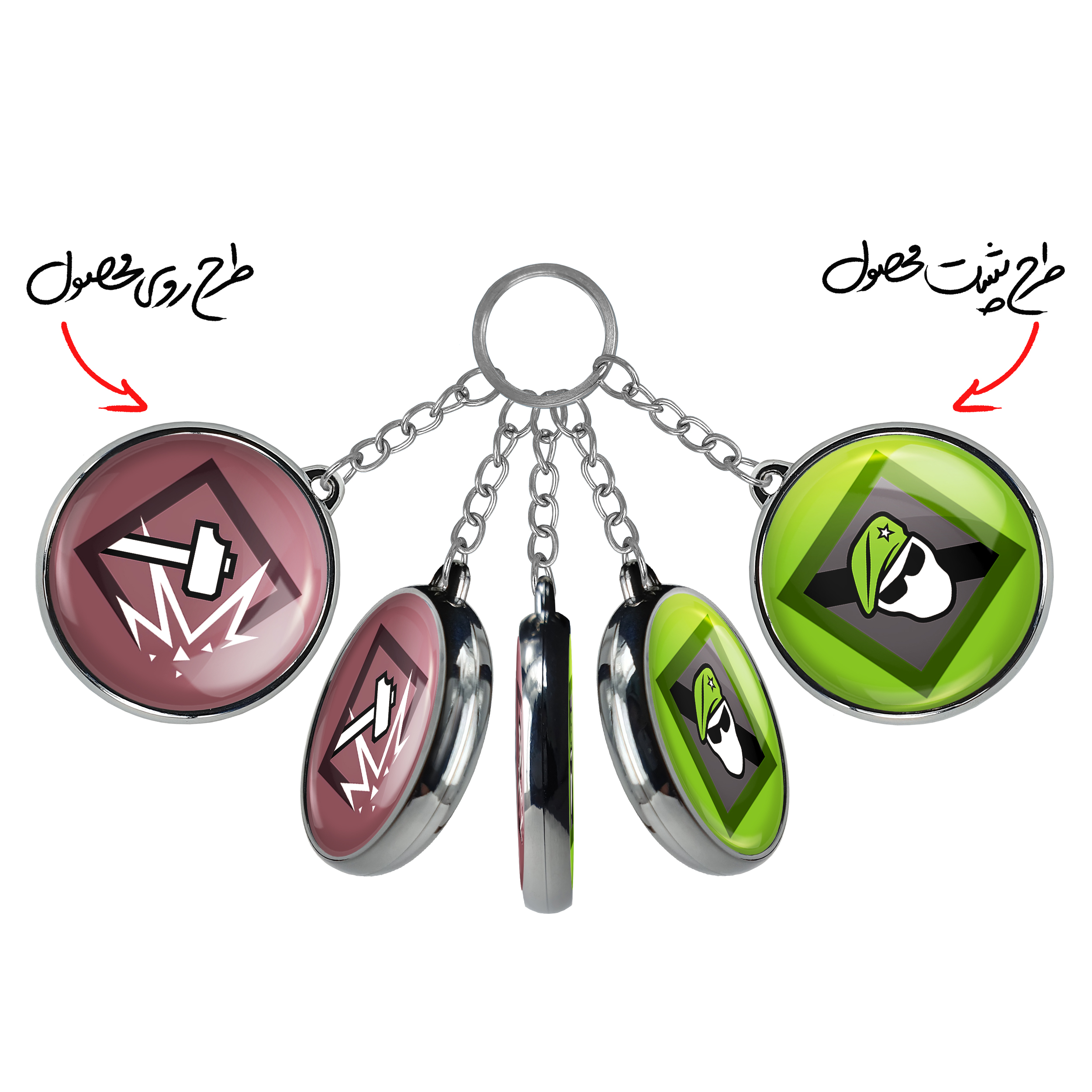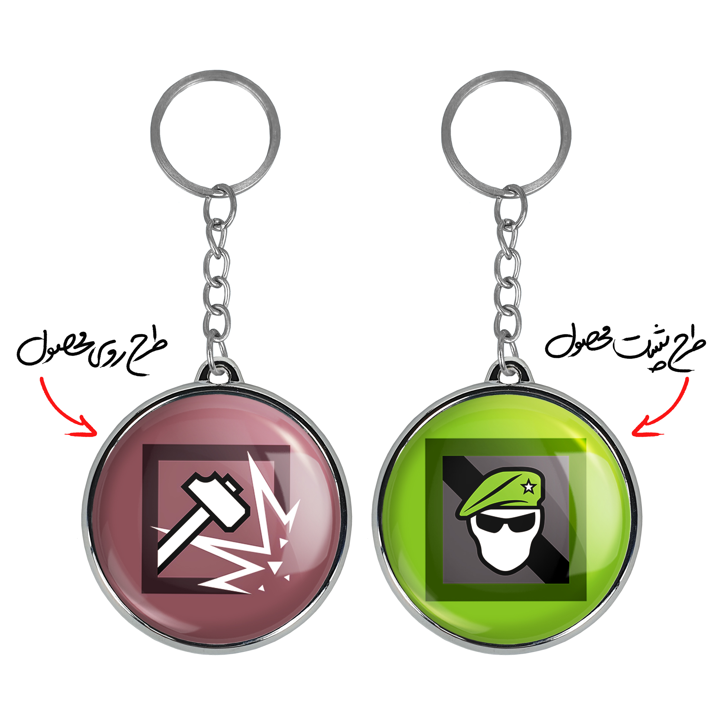 جاکلیدی دوطرفه sledge بازی رینبو سیکس سیج خندالو محصولی کاربردی و جدید است که در هر دو سمت محصول، تصویری متفاوت اما از یک موضوع چاپ شده و تفاوت اصلی آن با جاکلیدی های یک طرفه در همین است که هر دو سمت پشت و روی جاکلیدی، طرحی دیدنی و جذاب دارد. همچنین رینگ بکار برده شده برای دور طرح ها آبکاری کروم درجه یک و رنگ ثابت است و برخلاف سایر محصولات مشابه، از رنگ های متفرقه و یا سفید استفاده نشده، که این مهم، زیبایی محصول نهایی را چند برابر کرده است. جاکلیدی های دوطرفه sledge بازی رینبو سیکس سیج با استفاده از روکش سلفون براق ضدخش تولید شده که خاصیت ضدخش بودن آن عمر مفید استفاده از جاکلیدی ها را افزایش میدهد. چاپ جاکلیدی ها با دستگاه های استاندارد و با بهترین سطح کیفیت صورت گرفته و طرح با شفافیتی مثال زدنی و با سلفون چسبی تولید شده است که باعث شده محصول نهایی بدون شکست نور دیده شود. همچنین بسته بندی جذاب و مینیمال جاکلیدی دوطرفه sledge بازی رینبو سیکس سیج ، آنها را محصولی مناسب هدیه کرده است. زنجیر و حلقه بکار برده شده در جاکلیدی خندالو از نوع حلقه ضخیم و محکم بوده و حین استفاده آسیب نمی بیند.