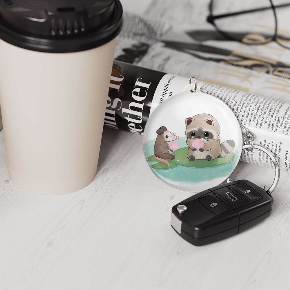 چاپ جاکلیدی راکون و موش کور حیوانات بامزه با دستگاه های استاندارد و با بهترین سطح کیفیت صورت گرفته و طرح با شفافیتی مثال زدنی و با سلفون حرارتی مات مخملی ضدخش تولید شده است که باعث می شود محصول نهایی بدون شکست نور دیده شود.