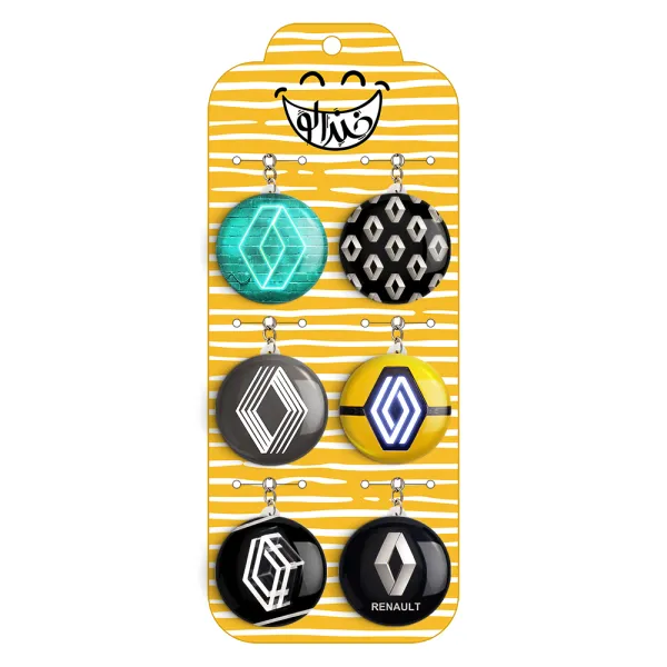 پک 6 عددی جاکلیدی خندالو طرح رنو (Renault) با استفاده از روکش سلفون حرارتی مات ضدخش تولید شده که خاصیت ضدخش بودن آن عمر مفید استفاده از جاکلیدی ها را افزایش میدهد. چاپ جاکلیدی ها با دستگاه های استاندارد و با بهترین سطح کیفیت صورت گرفته و طرح با شفافیتی مثال زدنی و با سلفون چسبی تولید شده است که باعث شده محصول نهایی بدون شکست نور دیده شود.