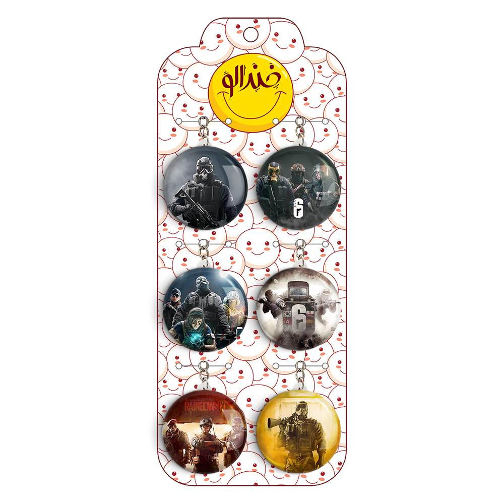 پک 6 عددی جاکلیدی خندالو طرح رینبوسیکس (Rainbow Six) با استفاده از روکش سلفون حرارتی مات ضدخش تولید شده که خاصیت ضدخش بودن آن عمر مفید استفاده از جاکلیدی ها را افزایش میدهد. چاپ جاکلیدی ها با دستگاه های استاندارد و با بهترین سطح کیفیت صورت گرفته و طرح با شفافیتی مثال زدنی و با سلفون چسبی تولید شده است که باعث شده محصول نهایی بدون شکست نور دیده شود.