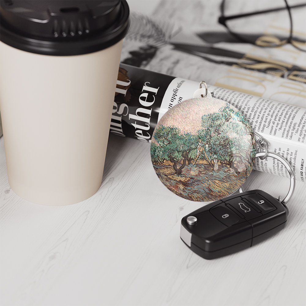 جاکلیدی زنان در حال چیدن زیتون ونسان ونگوگ (Van Gogh) صرفا برای آویز کلید نیست و میتوان آن را به عنوان آویز زینتی از زیپ کیف، آیینه جلوی خودرو، درب کمد دیواری اتاق ها و… آویزان کرد.
