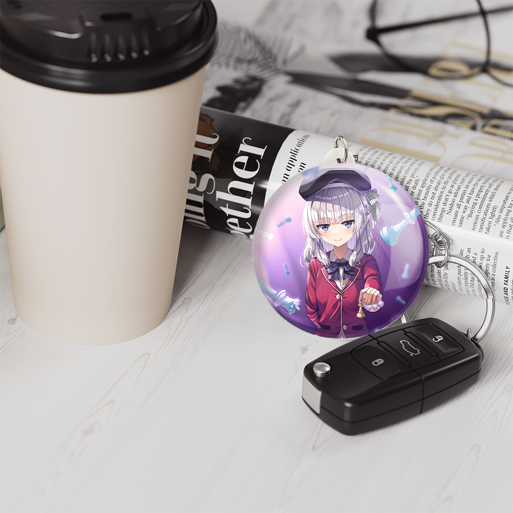 جاکلیدی ساکایاناگی انیمه کلاس نخبگان صرفا برای آویز کلید نیست و میتوان آن را به عنوان آویز زینتی از زیپ کیف، آیینه جلوی خودرو، درب کمد دیواری اتاق ها و… آویزان کرد.