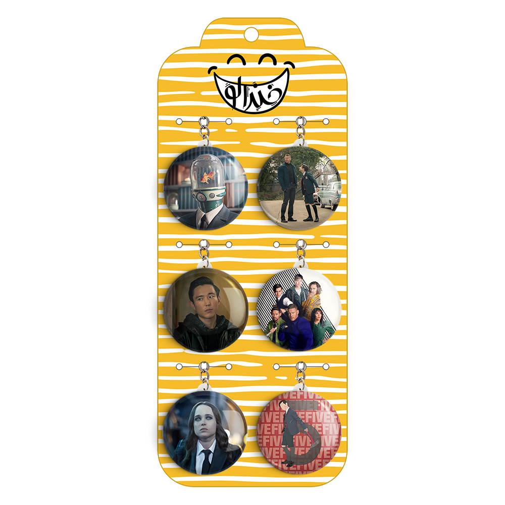 پک 6 عددی جاکلیدی خندالو طرح سریال آکادمی آمبرلا (Umbrella Academy) با استفاده از روکش سلفون حرارتی مات ضدخش تولید شده که خاصیت ضدخش بودن آن عمر مفید استفاده از جاکلیدی ها را افزایش میدهد. چاپ جاکلیدی ها با دستگاه های استاندارد و با بهترین سطح کیفیت صورت گرفته و طرح با شفافیتی مثال زدنی و با سلفون چسبی تولید شده است که باعث شده محصول نهایی بدون شکست نور دیده شود. همچنین بسته بندی جذاب و مینیمال جاکلیدی ها، آنها را محصولی مناسب هدیه کرده است. زنجیر و حلقه بکار برده شده در جاکلیدی خندالو از نوع حلقه درجه یک و ضخیم و محکم بوده و حین استفاده آسیب نمی بیند. قطعی پشتی جاکلیدی از جنس ABS شفاف سفید رنگ تولید شده که در مقابل خط و خش مقاوم بوده و به هیچ عنوان دچار شکستگی نخواهد شد.