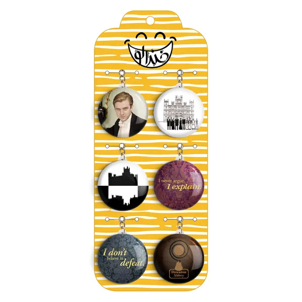 پک 6 عددی جاکلیدی خندالو طرح سریال دانتون ابی (Downton Abbey) با استفاده از روکش سلفون حرارتی مات ضدخش تولید شده که خاصیت ضدخش بودن آن عمر مفید استفاده از جاکلیدی ها را افزایش میدهد. چاپ جاکلیدی ها با دستگاه های استاندارد و با بهترین سطح کیفیت صورت گرفته و طرح با شفافیتی مثال زدنی و با سلفون چسبی تولید شده است که باعث شده محصول نهایی بدون شکست نور دیده شود.