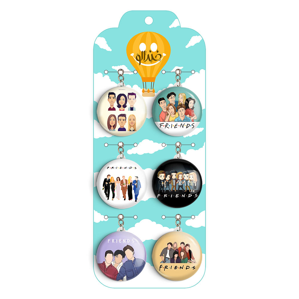 پک 6 عددی جاکلیدی خندالو طرح سریال فرندز(Friends) با استفاده از روکش سلفون حرارتی مات ضدخش تولید شده که خاصیت ضدخش بودن آن عمر مفید استفاده از جاکلیدی ها را افزایش میدهد. چاپ جاکلیدی ها با دستگاه های استاندارد و با بهترین سطح کیفیت صورت گرفته و طرح با شفافیتی مثال زدنی و با سلفون چسبی تولید شده است که باعث شده محصول نهایی بدون شکست نور دیده شود. همچنین بسته بندی جذاب و مینیمال جاکلیدی ها، آنها را محصولی مناسب هدیه کرده است. زنجیر و حلقه بکار برده شده در جاکلیدی خندالو از نوع حلقه درجه یک و ضخیم و محکم بوده و حین استفاده آسیب نمی بیند. قطعی پشتی جاکلیدی از جنس ABS شفاف سفید رنگ تولید شده که در مقابل خط و خش مقاوم بوده و به هیچ عنوان دچار شکستگی نخواهد شد.