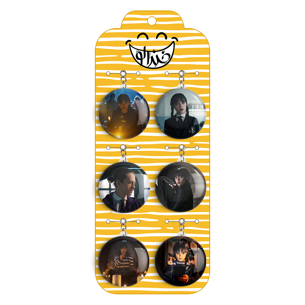 پک 6 عددی جاکلیدی خندالو طرح سریال ونزدی (wednesday) با استفاده از روکش سلفون حرارتی مات ضدخش تولید شده که خاصیت ضدخش بودن آن عمر مفید استفاده از جاکلیدی ها را افزایش میدهد. چاپ جاکلیدی ها با دستگاه های استاندارد و با بهترین سطح کیفیت صورت گرفته و طرح با شفافیتی مثال زدنی و با سلفون چسبی تولید شده است که باعث شده محصول نهایی بدون شکست نور دیده شود.