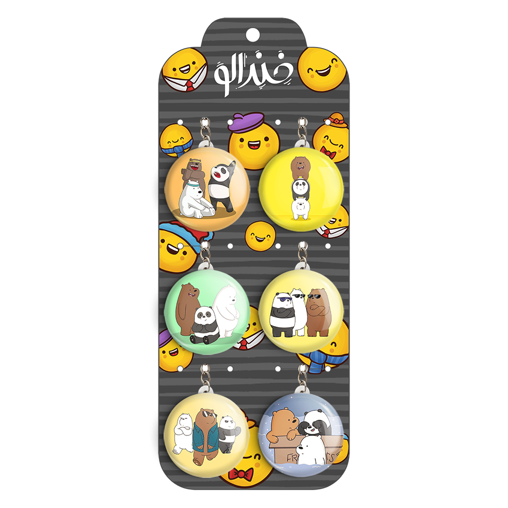 پک 6 عددی جاکلیدی خندالو طرح سه خرس کله پوک با استفاده از روکش سلفون حرارتی مات ضدخش تولید شده که خاصیت ضدخش بودن آن عمر مفید استفاده از جاکلیدی ها را افزایش میدهد. چاپ جاکلیدی ها با دستگاه های استاندارد و با بهترین سطح کیفیت صورت گرفته و طرح با شفافیتی مثال زدنی و با سلفون چسبی تولید شده است که باعث شده محصول نهایی بدون شکست نور دیده شود. همچنین بسته بندی جذاب و مینیمال جاکلیدی ها، آنها را محصولی مناسب هدیه کرده است. زنجیر و حلقه بکار برده شده در جاکلیدی خندالو از نوع حلقه درجه یک و ضخیم و محکم بوده و حین استفاده آسیب نمی بیند. قطعی پشتی جاکلیدی از جنس ABS شفاف سفید رنگ تولید شده که در مقابل خط و خش مقاوم بوده و به هیچ عنوان دچار شکستگی نخواهد شد.