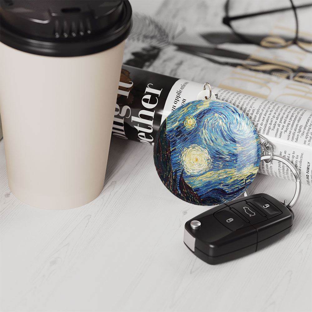 جاکلیدی شب پر ستاره ونگوگ صرفا برای آویز کلید نیست و میتوان آن را به عنوان آویز زینتی از زیپ کیف، آیینه جلوی خودرو، درب کمد دیواری اتاق ها و… آویزان کرد.