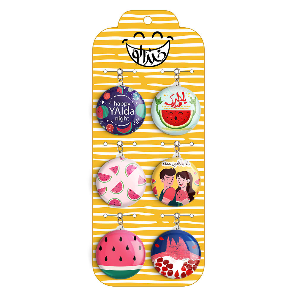 پک 6 عددی جاکلیدی خندالو طرح شب یلدا با استفاده از روکش سلفون حرارتی مات ضدخش تولید شده که خاصیت ضدخش بودن آن عمر مفید استفاده از جاکلیدی ها را افزایش میدهد. چاپ جاکلیدی ها با دستگاه های استاندارد و با بهترین سطح کیفیت صورت گرفته و طرح با شفافیتی مثال زدنی و با سلفون چسبی تولید شده است که باعث شده محصول نهایی بدون شکست نور دیده شود.