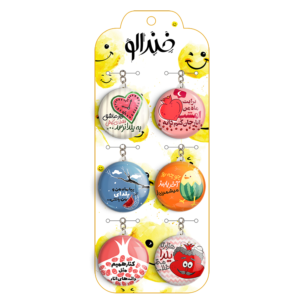 پک 6 عددی جاکلیدی خندالو طرح شب یلدا با استفاده از روکش سلفون حرارتی مات ضدخش تولید شده که خاصیت ضدخش بودن آن عمر مفید استفاده از جاکلیدی ها را افزایش میدهد. چاپ جاکلیدی ها با دستگاه های استاندارد و با بهترین سطح کیفیت صورت گرفته و طرح با شفافیتی مثال زدنی و با سلفون چسبی تولید شده است که باعث شده محصول نهایی بدون شکست نور دیده شود.
