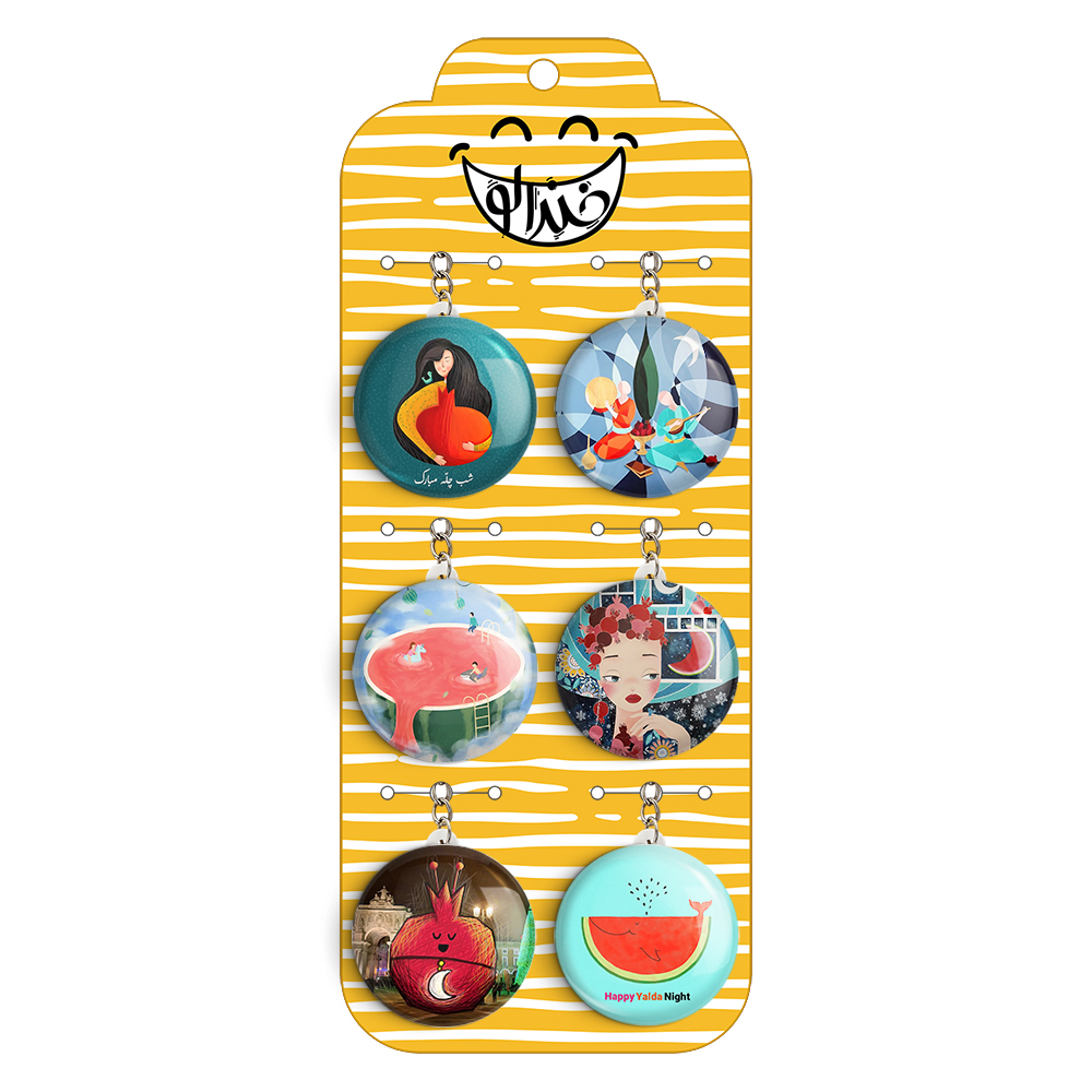 پک 6 عددی جاکلیدی خندالو طرح شب یلدا با استفاده از روکش سلفون حرارتی مات ضدخش تولید شده که خاصیت ضدخش بودن آن عمر مفید استفاده از جاکلیدی ها را افزایش میدهد. چاپ جاکلیدی ها با دستگاه های استاندارد و با بهترین سطح کیفیت صورت گرفته و طرح با شفافیتی مثال زدنی و با سلفون چسبی تولید شده است که باعث شده محصول نهایی بدون شکست نور دیده شود.