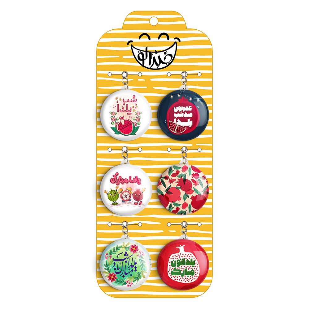 پک 6 عددی جاکلیدی خندالو طرح شب یلدا با استفاده از روکش سلفون حرارتی مات ضدخش تولید شده که خاصیت ضدخش بودن آن عمر مفید استفاده از جاکلیدی ها را افزایش میدهد. چاپ جاکلیدی ها با دستگاه های استاندارد و با بهترین سطح کیفیت صورت گرفته و طرح با شفافیتی مثال زدنی و با سلفون چسبی تولید شده است که باعث شده محصول نهایی بدون شکست نور دیده شود.
