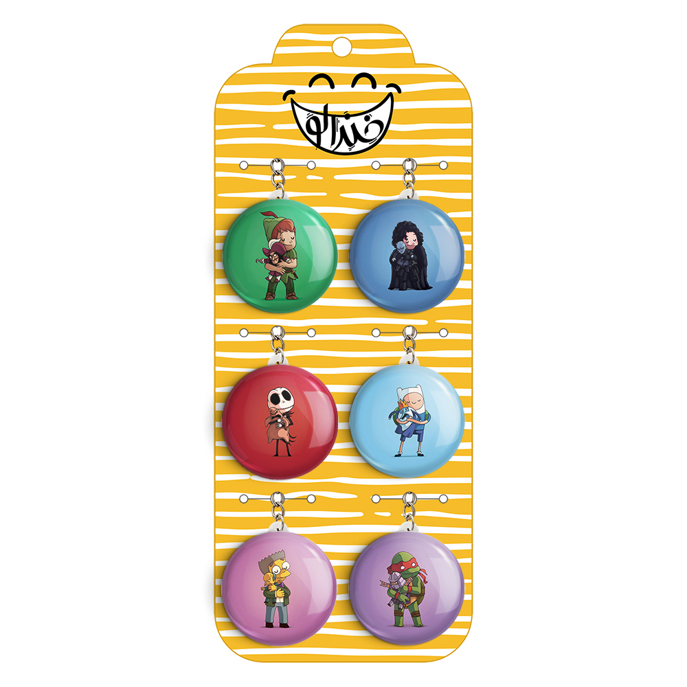 پک 6 عددی جاکلیدی خندالو طرح شخصیت های فیلم و کارتون با استفاده از روکش سلفون حرارتی مات ضدخش تولید شده که خاصیت ضدخش بودن آن عمر مفید استفاده از جاکلیدی ها را افزایش میدهد. چاپ جاکلیدی ها با دستگاه های استاندارد و با بهترین سطح کیفیت صورت گرفته و طرح با شفافیتی مثال زدنی و با سلفون چسبی تولید شده است که باعث شده محصول نهایی بدون شکست نور دیده شود.