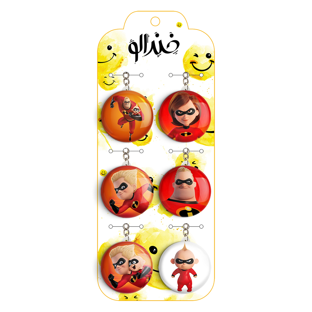 پک 6 عددی جاکلیدی خندالو طرح شگفت انگیزان (Incredibles) با استفاده از روکش سلفون حرارتی مات ضدخش تولید شده که خاصیت ضدخش بودن آن عمر مفید استفاده از جاکلیدی ها را افزایش میدهد. چاپ جاکلیدی ها با دستگاه های استاندارد و با بهترین سطح کیفیت صورت گرفته و طرح با شفافیتی مثال زدنی و با سلفون چسبی تولید شده است که باعث شده محصول نهایی بدون شکست نور دیده شود.