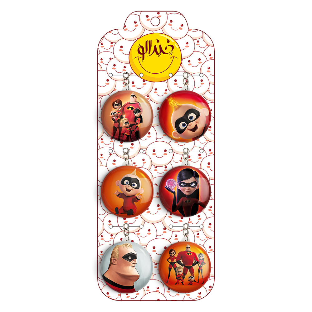 پک 6 عددی جاکلیدی خندالو طرح شگفت انگیزان (Incredibles) با استفاده از روکش سلفون حرارتی مات ضدخش تولید شده که خاصیت ضدخش بودن آن عمر مفید استفاده از جاکلیدی ها را افزایش میدهد. چاپ جاکلیدی ها با دستگاه های استاندارد و با بهترین سطح کیفیت صورت گرفته و طرح با شفافیتی مثال زدنی و با سلفون چسبی تولید شده است که باعث شده محصول نهایی بدون شکست نور دیده شود.