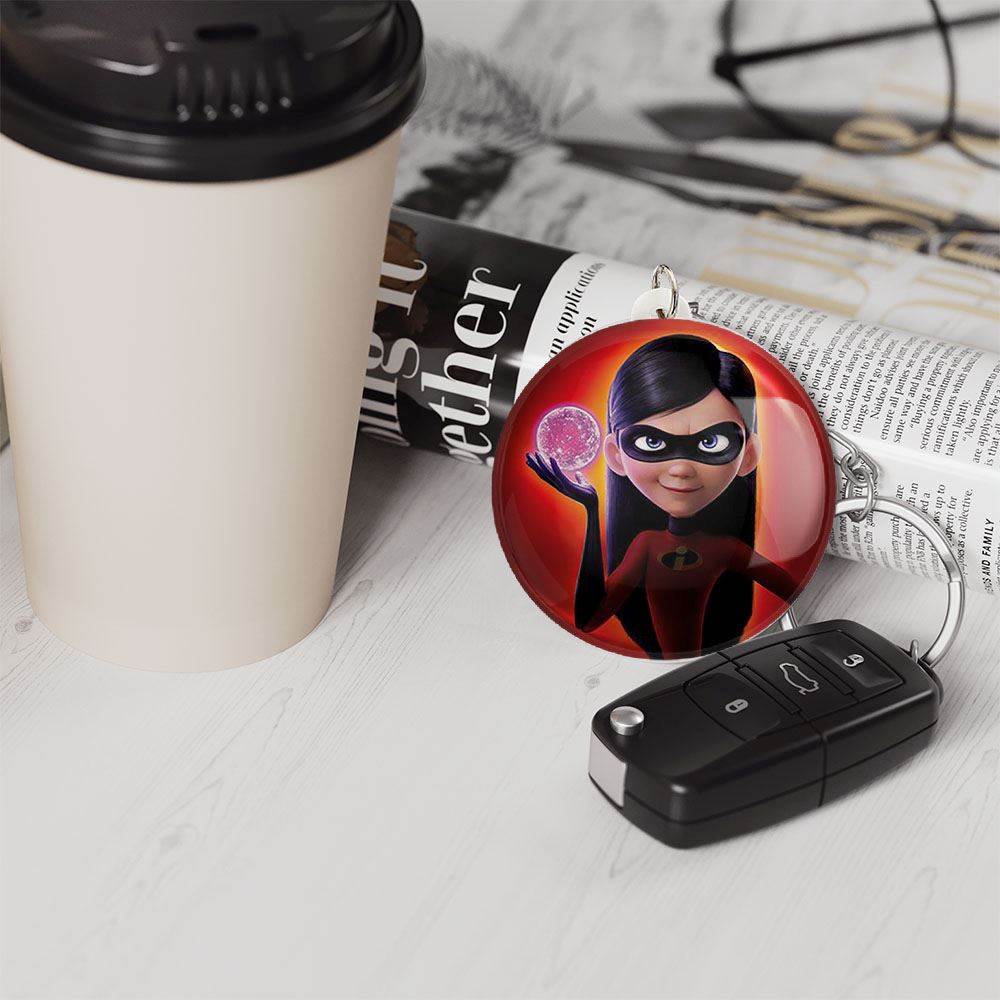 جاکلیدی شگفت انگیزان The Incredibles صرفا برای آویز کلید نیست و میتوان آن را به عنوان آویز زینتی از زیپ کیف، آیینه جلوی خودرو، درب کمد دیواری اتاق ها و… آویزان کرد.