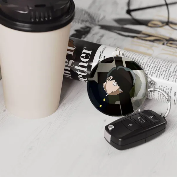 خندالو جاکلیدی شییکو انیمه موب سایکو Mob Psycho 100 را با استفاده از روکش سلفون حرارتی مات مخملی ضدخش تولید می کند که خاصیت ضدخش بودن آن، کمک میکند تا عمر مفید استفاده از جاکلیدی ها افزایش پیدا کند و با یک خراش ساده مثل برخورد سطح ناخن با محصول، دچار و خط و خش نشود.