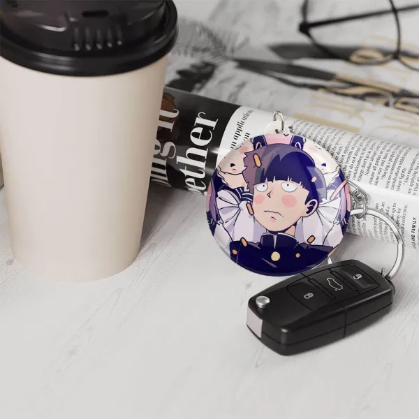 خندالو جاکلیدی شییکو انیمه موب سایکو Mob Psycho 100 را با استفاده از روکش سلفون حرارتی مات مخملی ضدخش تولید می کند که خاصیت ضدخش بودن آن، کمک میکند تا عمر مفید استفاده از جاکلیدی ها افزایش پیدا کند و با یک خراش ساده مثل برخورد سطح ناخن با محصول، دچار و خط و خش نشود.