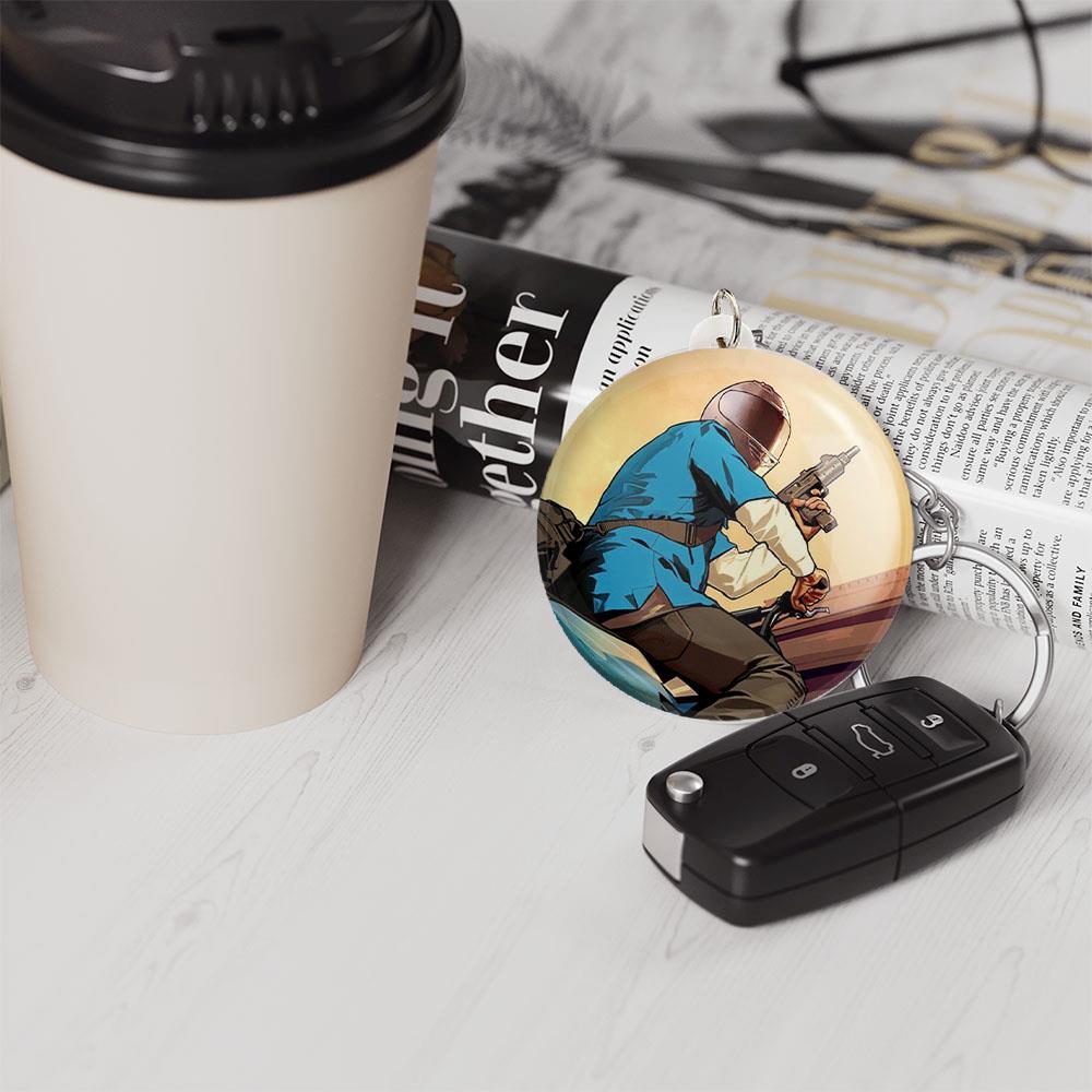 جاکلیدی فرانکلین جی تی ای GTA صرفا برای آویز کلید نیست و میتوان آن را به عنوان آویز زینتی از زیپ کیف، آیینه جلوی خودرو، درب کمد دیواری اتاق ها و… آویزان کرد.