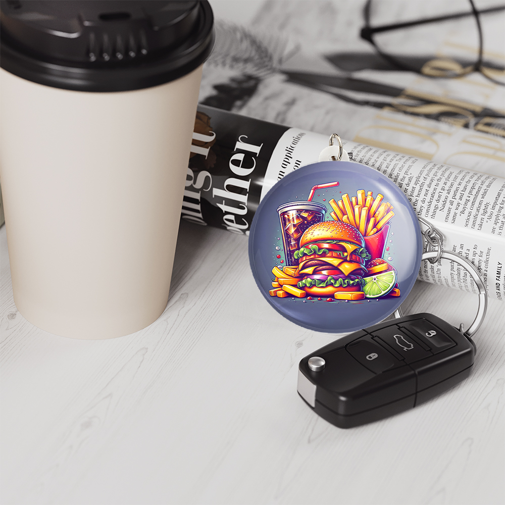 جاکلیدی فست فود (Fast Food) صرفا برای آویز کلید نیست و میتوان آن را به عنوان آویز زینتی از زیپ کیف، آیینه جلوی خودرو، درب کمد دیواری اتاق ها و… آویزان کرد.