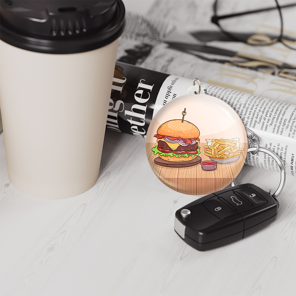 جاکلیدی فست فود (Fast Food) صرفا برای آویز کلید نیست و میتوان آن را به عنوان آویز زینتی از زیپ کیف، آیینه جلوی خودرو، درب کمد دیواری اتاق ها و… آویزان کرد.
