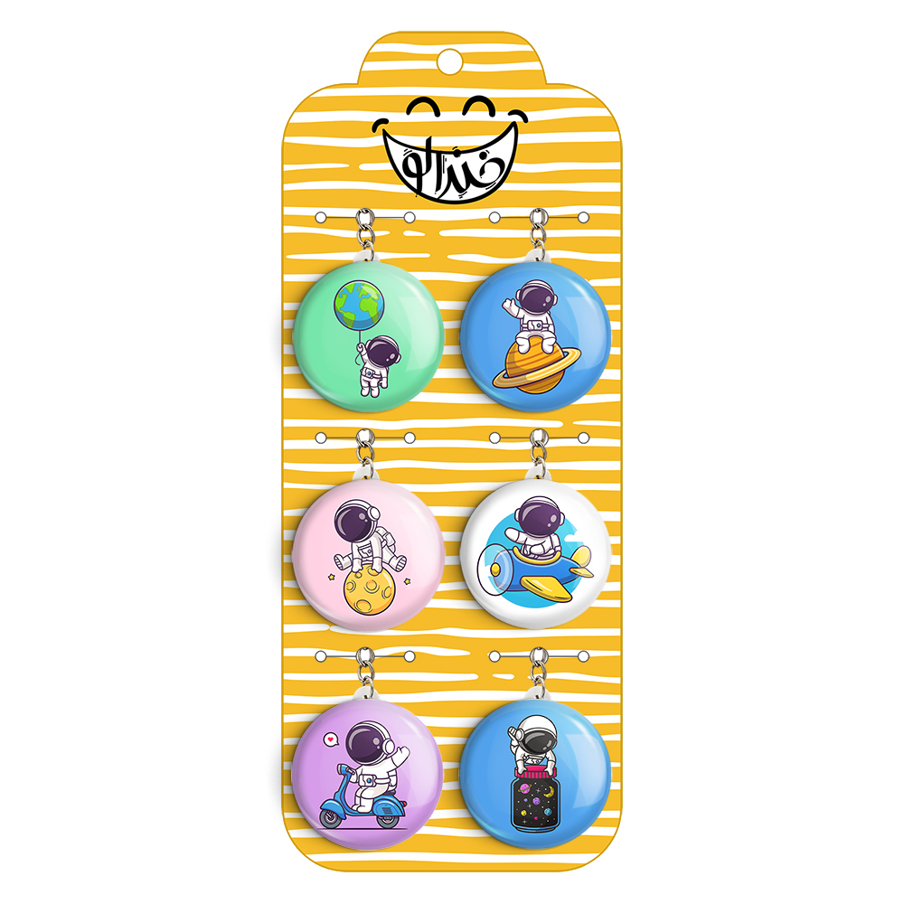 پک 6 عددی جاکلیدی خندالو طرح فضانورد (astronaut) با استفاده از روکش سلفون حرارتی مات ضدخش تولید شده که خاصیت ضدخش بودن آن عمر مفید استفاده از جاکلیدی ها را افزایش میدهد. چاپ جاکلیدی ها با دستگاه های استاندارد و با بهترین سطح کیفیت صورت گرفته و طرح با شفافیتی مثال زدنی و با سلفون چسبی تولید شده است که باعث شده محصول نهایی بدون شکست نور دیده شود.