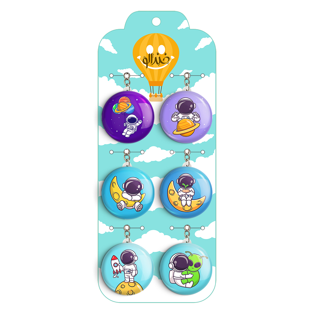 پک 6 عددی جاکلیدی خندالو طرح فضانورد (astronaut) با استفاده از روکش سلفون حرارتی مات ضدخش تولید شده که خاصیت ضدخش بودن آن عمر مفید استفاده از جاکلیدی ها را افزایش میدهد. چاپ جاکلیدی ها با دستگاه های استاندارد و با بهترین سطح کیفیت صورت گرفته و طرح با شفافیتی مثال زدنی و با سلفون چسبی تولید شده است که باعث شده محصول نهایی بدون شکست نور دیده شود. همچنین بسته بندی جذاب و مینیمال جاکلیدی ها، آنها را محصولی مناسب هدیه کرده است. زنجیر و حلقه بکار برده شده در جاکلیدی خندالو از نوع حلقه درجه یک و ضخیم و محکم بوده و حین استفاده آسیب نمی بیند. قطعی پشتی جاکلیدی از جنس ABS شفاف سفید رنگ تولید شده که در مقابل خط و خش مقاوم بوده و به هیچ عنوان دچار شکستگی نخواهد شد.