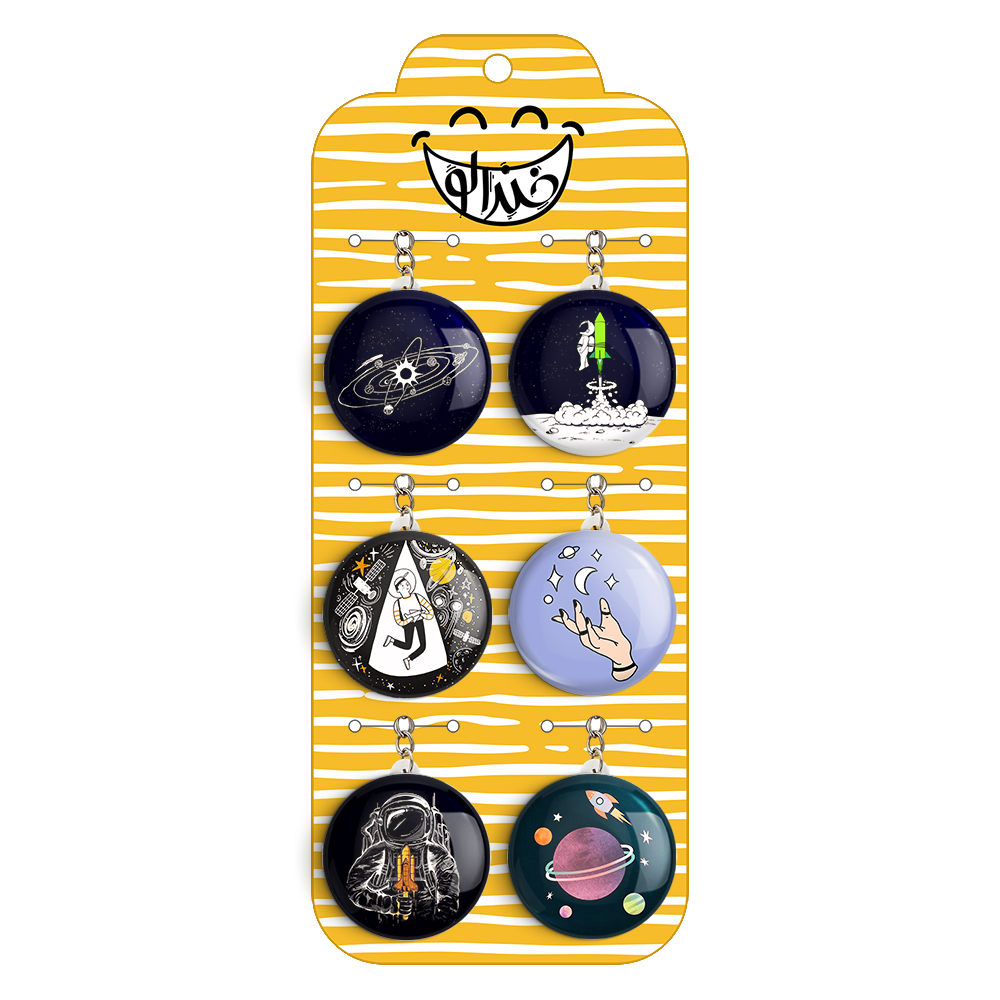 پک 6 عددی جاکلیدی خندالو طرح فضایی (Spatial) با استفاده از روکش سلفون حرارتی مات ضدخش تولید شده که خاصیت ضدخش بودن آن عمر مفید استفاده از جاکلیدی ها را افزایش میدهد. چاپ جاکلیدی ها با دستگاه های استاندارد و با بهترین سطح کیفیت صورت گرفته و طرح با شفافیتی مثال زدنی و با سلفون چسبی تولید شده است که باعث شده محصول نهایی بدون شکست نور دیده شود.