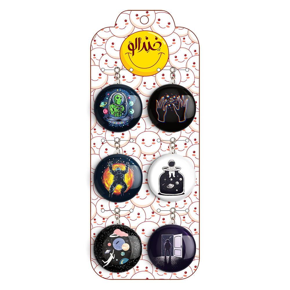 پک 6 عددی جاکلیدی خندالو طرح فضایی (Spatial) با استفاده از روکش سلفون حرارتی مات ضدخش تولید شده که خاصیت ضدخش بودن آن عمر مفید استفاده از جاکلیدی ها را افزایش میدهد. چاپ جاکلیدی ها با دستگاه های استاندارد و با بهترین سطح کیفیت صورت گرفته و طرح با شفافیتی مثال زدنی و با سلفون چسبی تولید شده است که باعث شده محصول نهایی بدون شکست نور دیده شود.