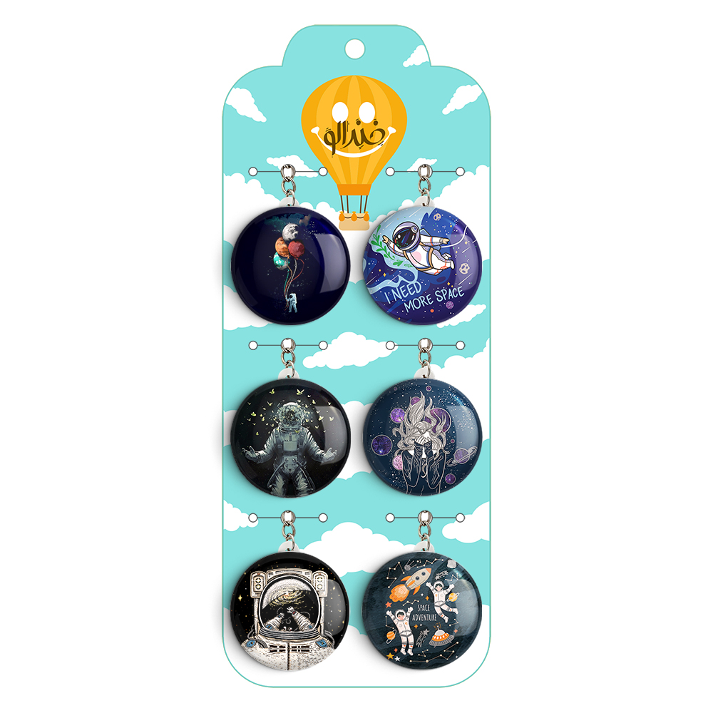 پک 6 عددی جاکلیدی خندالو طرح فضایی (Spatial) با استفاده از روکش سلفون حرارتی مات ضدخش تولید شده که خاصیت ضدخش بودن آن عمر مفید استفاده از جاکلیدی ها را افزایش میدهد. چاپ جاکلیدی ها با دستگاه های استاندارد و با بهترین سطح کیفیت صورت گرفته و طرح با شفافیتی مثال زدنی و با سلفون چسبی تولید شده است که باعث شده محصول نهایی بدون شکست نور دیده شود.