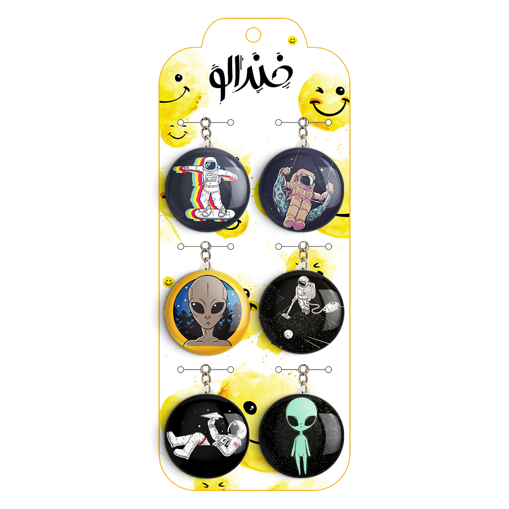 پک 6 عددی جاکلیدی خندالو طرح فضایی (Spatial) با استفاده از روکش سلفون حرارتی مات ضدخش تولید شده که خاصیت ضدخش بودن آن عمر مفید استفاده از جاکلیدی ها را افزایش میدهد. چاپ جاکلیدی ها با دستگاه های استاندارد و با بهترین سطح کیفیت صورت گرفته و طرح با شفافیتی مثال زدنی و با سلفون چسبی تولید شده است که باعث شده محصول نهایی بدون شکست نور دیده شود.