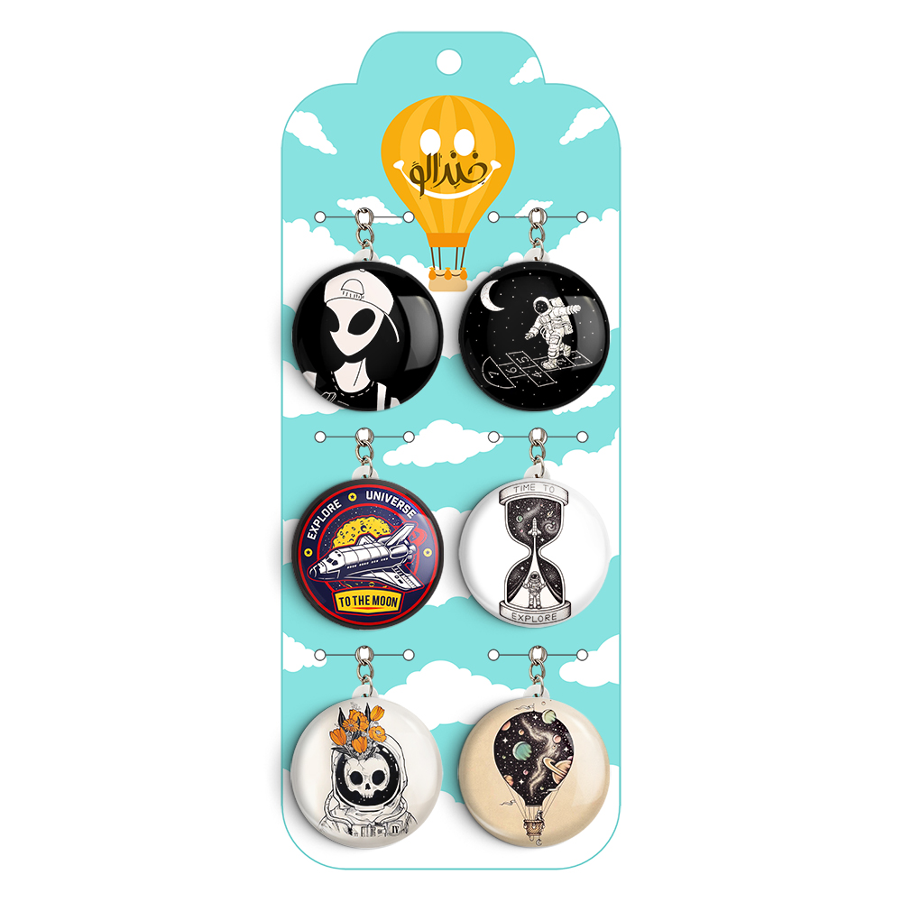 پک 6 عددی جاکلیدی خندالو طرح فضایی (Spatial) با استفاده از روکش سلفون حرارتی مات ضدخش تولید شده که خاصیت ضدخش بودن آن عمر مفید استفاده از جاکلیدی ها را افزایش میدهد. چاپ جاکلیدی ها با دستگاه های استاندارد و با بهترین سطح کیفیت صورت گرفته و طرح با شفافیتی مثال زدنی و با سلفون چسبی تولید شده است که باعث شده محصول نهایی بدون شکست نور دیده شود.
