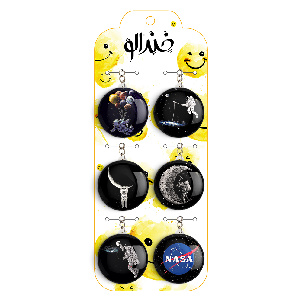 پک 6 عددی جاکلیدی خندالو طرح فضایی (Spatial) با استفاده از روکش سلفون حرارتی مات ضدخش تولید شده که خاصیت ضدخش بودن آن عمر مفید استفاده از جاکلیدی ها را افزایش میدهد. چاپ جاکلیدی ها با دستگاه های استاندارد و با بهترین سطح کیفیت صورت گرفته و طرح با شفافیتی مثال زدنی و با سلفون چسبی تولید شده است که باعث شده محصول نهایی بدون شکست نور دیده شود.