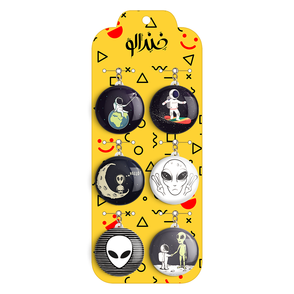 پک 6 عددی جاکلیدی خندالو طرح فضایی (Spatial) با استفاده از روکش سلفون حرارتی مات ضدخش تولید شده که خاصیت ضدخش بودن آن عمر مفید استفاده از جاکلیدی ها را افزایش میدهد. چاپ جاکلیدی ها با دستگاه های استاندارد و با بهترین سطح کیفیت صورت گرفته و طرح با شفافیتی مثال زدنی و با سلفون چسبی تولید شده است که باعث شده محصول نهایی بدون شکست نور دیده شود.