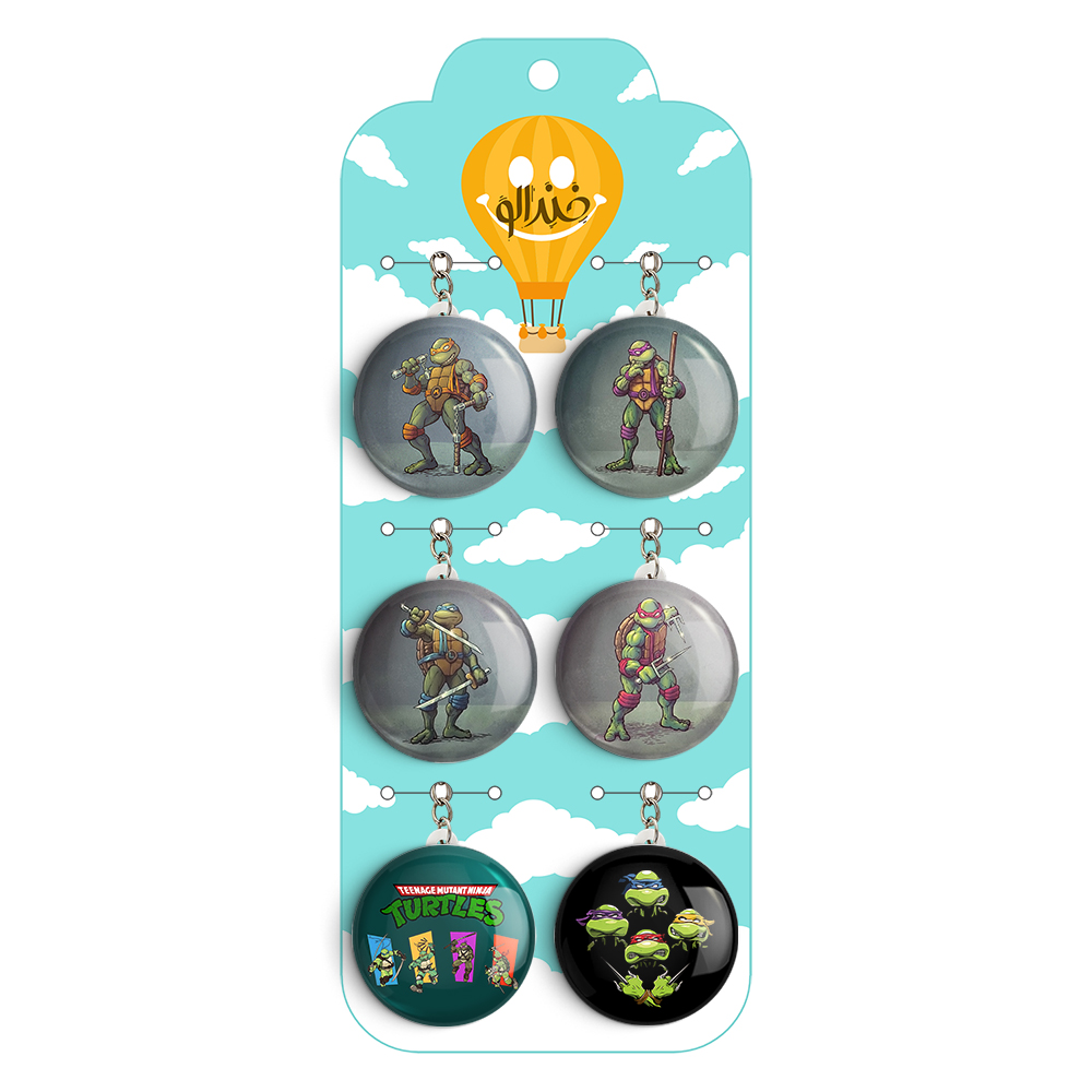 پک 6 عددی جاکلیدی خندالو طرح لاکپشت های نینجا با استفاده از روکش سلفون حرارتی مات ضدخش تولید شده که خاصیت ضدخش بودن آن عمر مفید استفاده از جاکلیدی ها را افزایش میدهد. چاپ جاکلیدی ها با دستگاه های استاندارد و با بهترین سطح کیفیت صورت گرفته و طرح با شفافیتی مثال زدنی و با سلفون چسبی تولید شده است که باعث شده محصول نهایی بدون شکست نور دیده شود. همچنین بسته بندی جذاب و مینیمال جاکلیدی ها، آنها را محصولی مناسب هدیه کرده است. زنجیر و حلقه بکار برده شده در جاکلیدی خندالو از نوع حلقه درجه یک و ضخیم و محکم بوده و حین استفاده آسیب نمی بیند. قطعی پشتی جاکلیدی از جنس ABS شفاف سفید رنگ تولید شده که در مقابل خط و خش مقاوم بوده و به هیچ عنوان دچار شکستگی نخواهد شد.