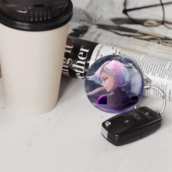 خندالو جاکلیدی لوسی انیمه سایبر پانک Cyberpunk را با استفاده از روکش سلفون حرارتی مات مخملی ضدخش تولید می کند که خاصیت ضدخش بودن آن، کمک میکند تا عمر مفید استفاده از جاکلیدی ها افزایش پیدا کند و با یک خراش ساده مثل برخورد سطح ناخن با محصول، دچار و خط و خش نشود.