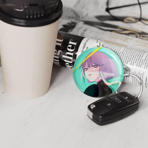 خندالو جاکلیدی لوسی انیمه سایبر پانک Cyberpunk را با استفاده از روکش سلفون حرارتی مات مخملی ضدخش تولید می کند که خاصیت ضدخش بودن آن، کمک میکند تا عمر مفید استفاده از جاکلیدی ها افزایش پیدا کند و با یک خراش ساده مثل برخورد سطح ناخن با محصول، دچار و خط و خش نشود.