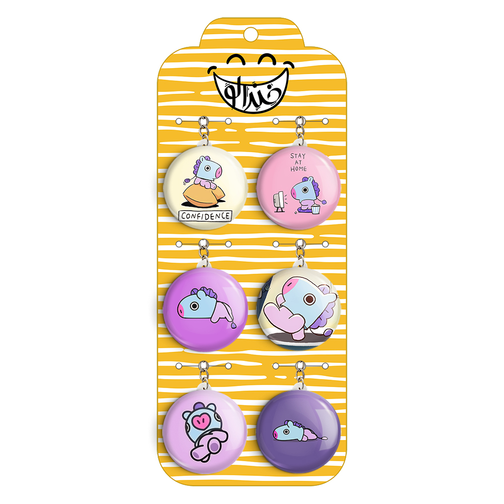 پک 6 عددی جاکلیدی خندالو طرح مانگ BT21 Mang با استفاده از روکش سلفون حرارتی مات ضدخش تولید شده که خاصیت ضدخش بودن آن عمر مفید استفاده از جاکلیدی ها را افزایش میدهد. چاپ جاکلیدی ها با دستگاه های استاندارد و با بهترین سطح کیفیت صورت گرفته و طرح با شفافیتی مثال زدنی و با سلفون چسبی تولید شده است که باعث شده محصول نهایی بدون شکست نور دیده شود. همچنین بسته بندی جذاب و مینیمال جاکلیدی ها، آنها را محصولی مناسب هدیه کرده است. زنجیر و حلقه بکار برده شده در جاکلیدی خندالو از نوع حلقه درجه یک و ضخیم و محکم بوده و حین استفاده آسیب نمی بیند. قطعی پشتی جاکلیدی از جنس ABS شفاف سفید رنگ تولید شده که در مقابل خط و خش مقاوم بوده و به هیچ عنوان دچار شکستگی نخواهد شد.