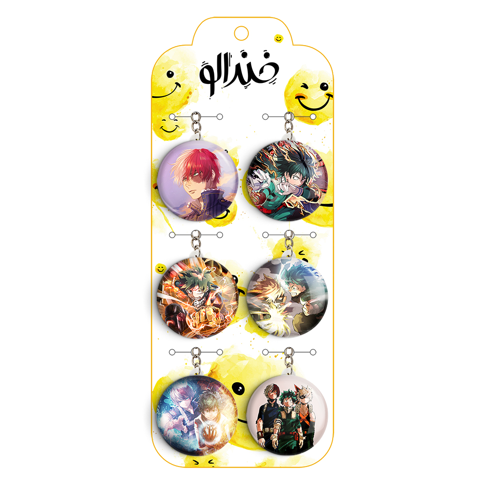 پک 6 عددی جاکلیدی خندالو طرح مای هیرو آکادمی با استفاده از روکش سلفون حرارتی مات ضدخش تولید شده که خاصیت ضدخش بودن آن عمر مفید استفاده از جاکلیدی ها را افزایش میدهد. چاپ جاکلیدی ها با دستگاه های استاندارد و با بهترین سطح کیفیت صورت گرفته و طرح با شفافیتی مثال زدنی و با سلفون چسبی تولید شده است که باعث شده محصول نهایی بدون شکست نور دیده شود. همچنین بسته بندی جذاب و مینیمال جاکلیدی ها، آنها را محصولی مناسب هدیه کرده است. زنجیر و حلقه بکار برده شده در جاکلیدی خندالو از نوع حلقه درجه یک و ضخیم و محکم بوده و حین استفاده آسیب نمی بیند. قطعی پشتی جاکلیدی از جنس ABS شفاف سفید رنگ تولید شده که در مقابل خط و خش مقاوم بوده و به هیچ عنوان دچار شکستگی نخواهد شد.