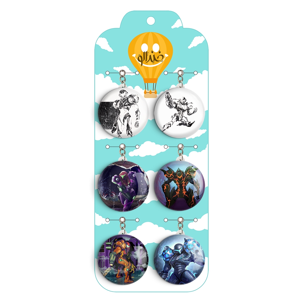 پک 6 عددی جاکلیدی خندالو طرح متروید (Metroid) با استفاده از روکش سلفون حرارتی مات ضدخش تولید شده که خاصیت ضدخش بودن آن عمر مفید استفاده از جاکلیدی ها را افزایش میدهد. چاپ جاکلیدی ها با دستگاه های استاندارد و با بهترین سطح کیفیت صورت گرفته و طرح با شفافیتی مثال زدنی و با سلفون چسبی تولید شده است که باعث شده محصول نهایی بدون شکست نور دیده شود.