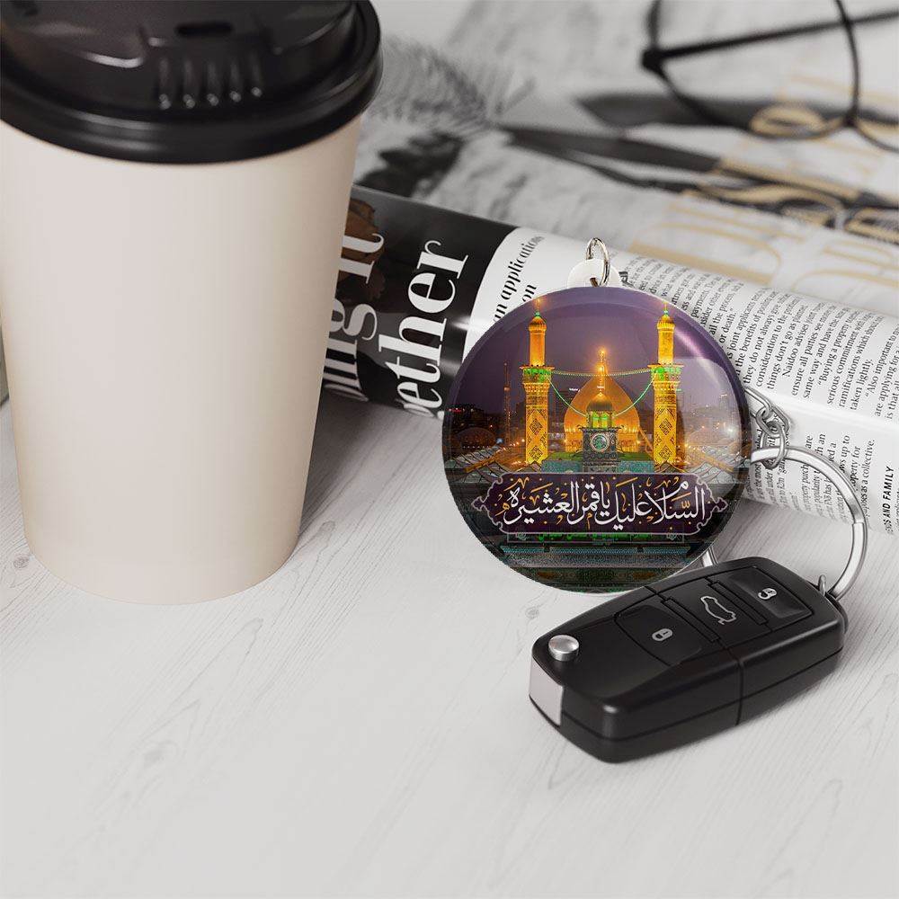 جاکلیدی محرم السلام علیک یا قمر العشیره صرفا برای آویز کلید نیست و میتوان آن را به عنوان آویز زینتی از زیپ کیف، آیینه جلوی خودرو، درب کمد دیواری اتاق ها و… آویزان کرد.