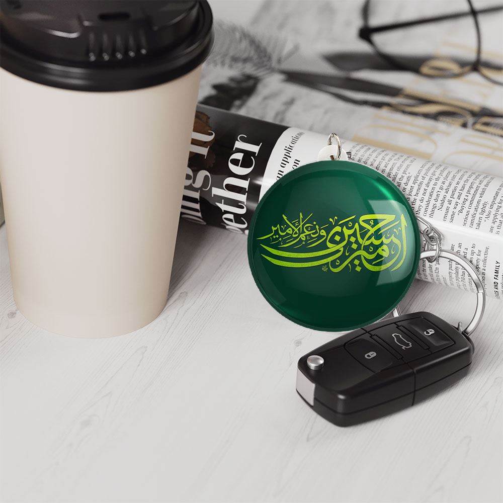 جاکلیدی محرم امیری حسین و نعم الامیر صرفا برای آویز کلید نیست و میتوان آن را به عنوان آویز زینتی از زیپ کیف، آیینه جلوی خودرو، درب کمد دیواری اتاق ها و… آویزان کرد.