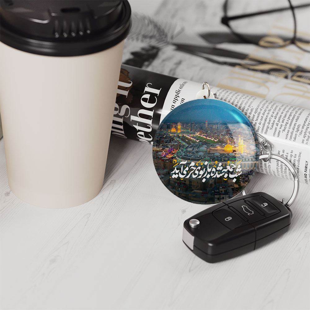جاکلیدی محرم شب جمعه شده باز بوی حرم می آید صرفا برای آویز کلید نیست و میتوان آن را به عنوان آویز زینتی از زیپ کیف، آیینه جلوی خودرو، درب کمد دیواری اتاق ها و… آویزان کرد.