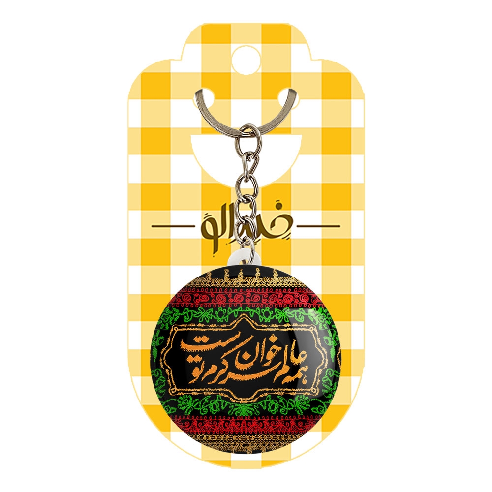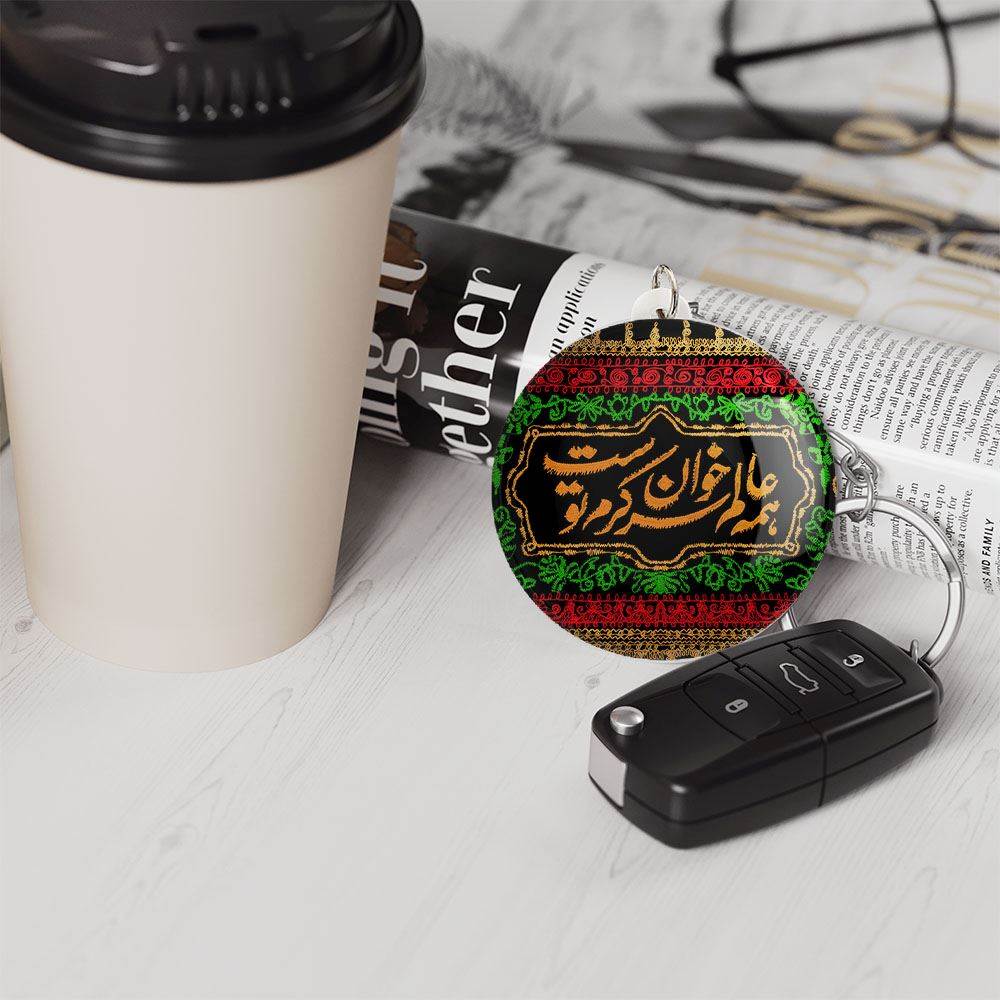 جاکلیدی محرم همه عالم سر خوان کرم توست صرفا برای آویز کلید نیست و میتوان آن را به عنوان آویز زینتی از زیپ کیف، آیینه جلوی خودرو، درب کمد دیواری اتاق ها و… آویزان کرد.