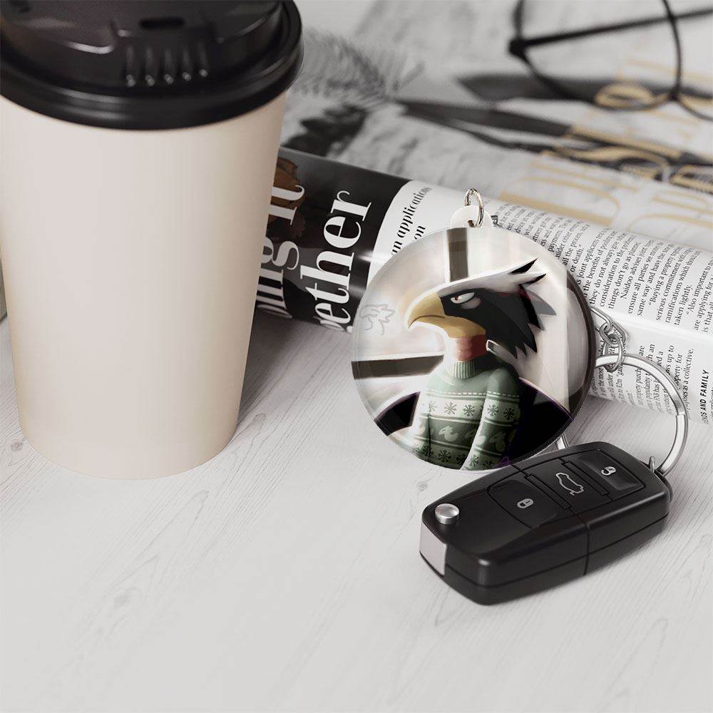 خندالو جاکلیدی مرد کلاغی انیمه آکادمی قهرمان من را با استفاده از روکش سلفون حرارتی مات مخملی ضدخش تولید می کند که خاصیت ضدخش بودن آن، کمک میکند تا عمر مفید استفاده از جاکلیدی ها افزایش پیدا کند و با یک خراش ساده مثل برخورد سطح ناخن با محصول، دچار و خط و خش نشود.