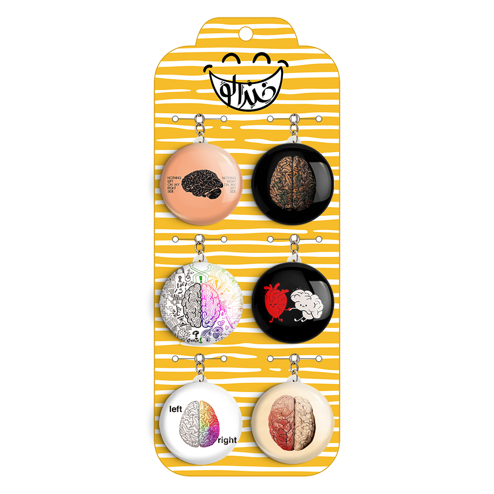 پک 6 عددی جاکلیدی خندالو طرح مغز با استفاده از روکش سلفون حرارتی مات ضدخش تولید شده که خاصیت ضدخش بودن آن عمر مفید استفاده از جاکلیدی ها را افزایش میدهد. چاپ جاکلیدی ها با دستگاه های استاندارد و با بهترین سطح کیفیت صورت گرفته و طرح با شفافیتی مثال زدنی و با سلفون چسبی تولید شده است که باعث شده محصول نهایی بدون شکست نور دیده شود.