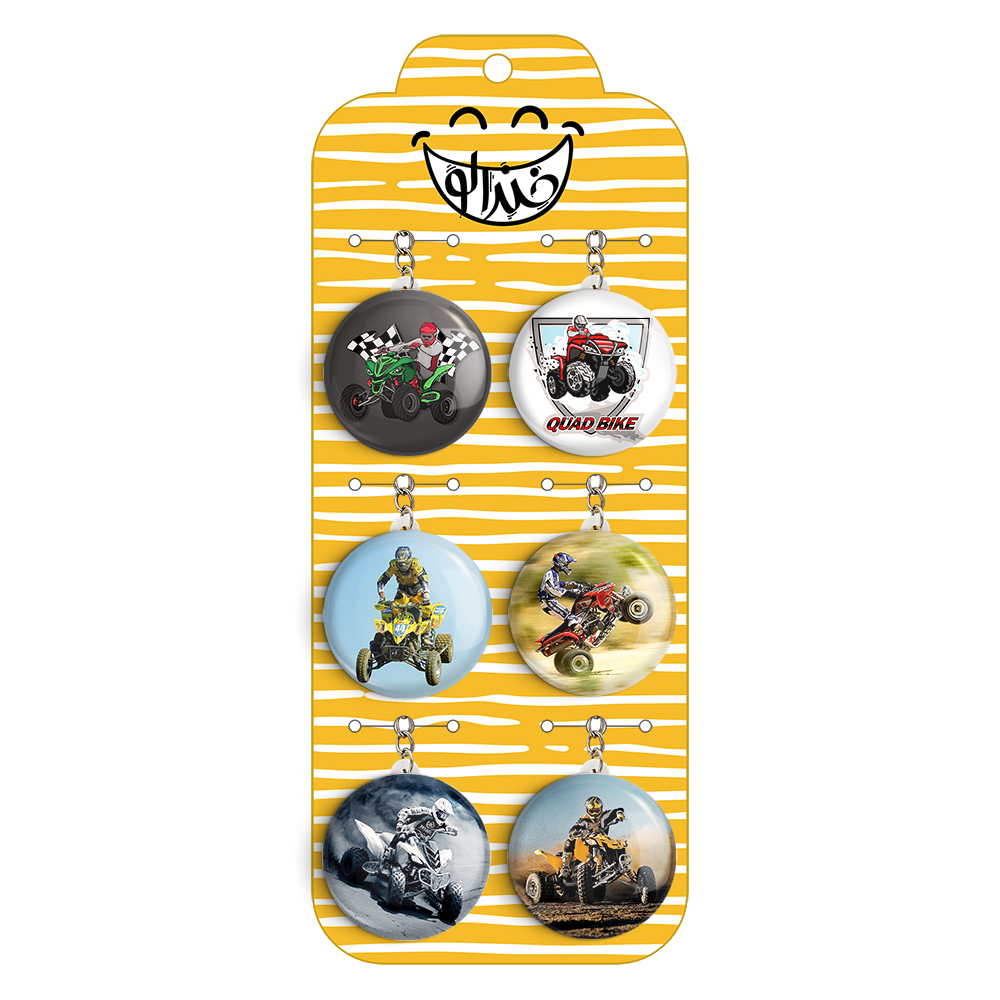 پک 6 عددی جاکلیدی خندالو طرح موتور چهار چرخ با استفاده از روکش سلفون حرارتی مات ضدخش تولید شده که خاصیت ضدخش بودن آن عمر مفید استفاده از جاکلیدی ها را افزایش میدهد. چاپ جاکلیدی ها با دستگاه های استاندارد و با بهترین سطح کیفیت صورت گرفته و طرح با شفافیتی مثال زدنی و با سلفون چسبی تولید شده است که باعث شده محصول نهایی بدون شکست نور دیده شود.