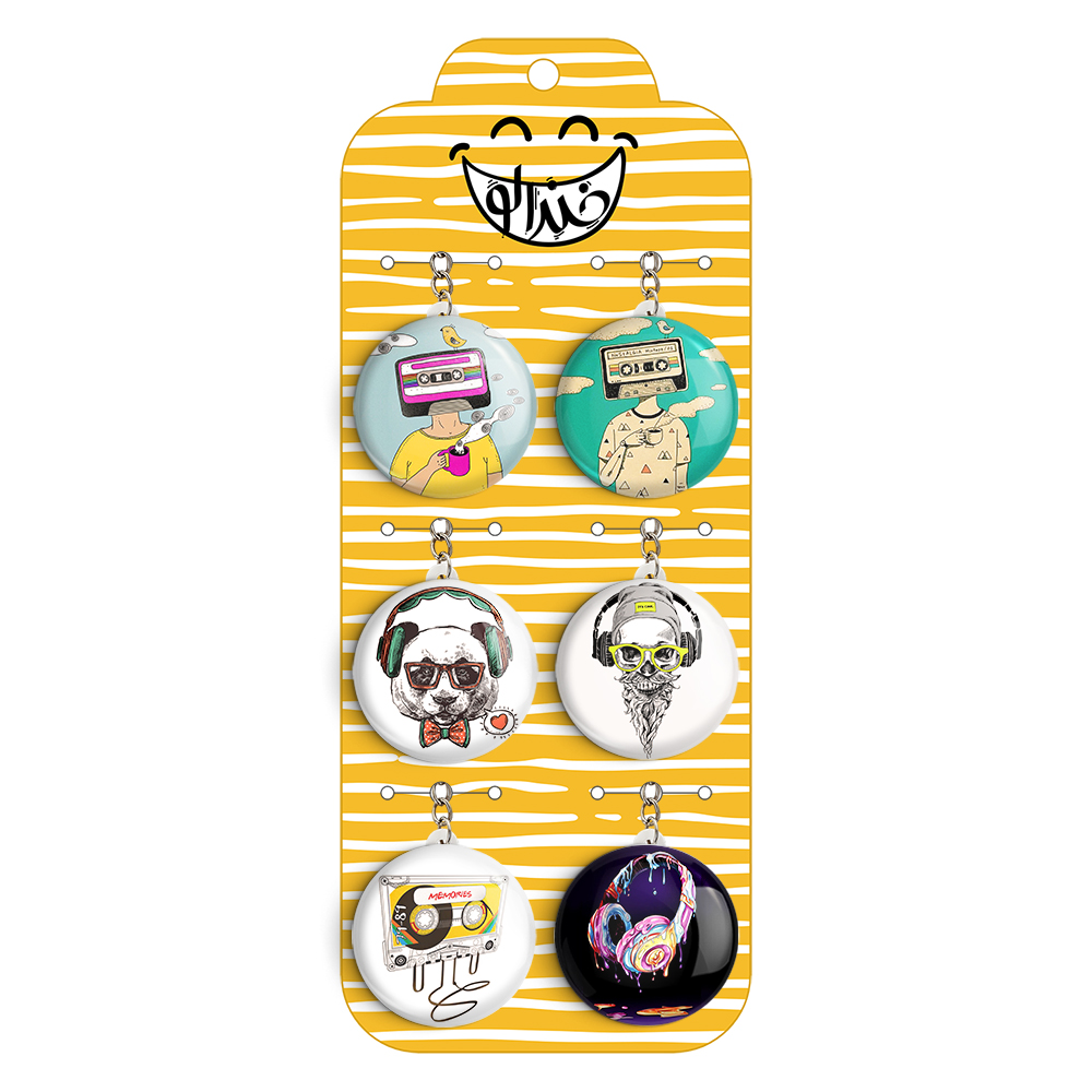 پک 6 عددی جاکلیدی خندالو طرح موسیقی (Music) با استفاده از روکش سلفون حرارتی مات ضدخش تولید شده که خاصیت ضدخش بودن آن عمر مفید استفاده از جاکلیدی ها را افزایش میدهد. چاپ جاکلیدی ها با دستگاه های استاندارد و با بهترین سطح کیفیت صورت گرفته و طرح با شفافیتی مثال زدنی و با سلفون چسبی تولید شده است که باعث شده محصول نهایی بدون شکست نور دیده شود.