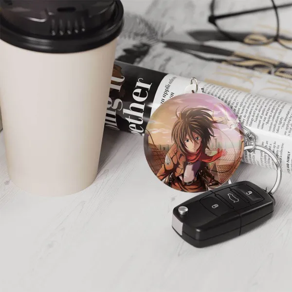 خندالو جاکلیدی میکاسا اکرمن انیمه اتک آن تایتان Attack on Titan را با استفاده از روکش سلفون حرارتی مات مخملی ضدخش تولید می کند که خاصیت ضدخش بودن آن، کمک میکند تا عمر مفید استفاده از جاکلیدی ها افزایش پیدا کند و با یک خراش ساده مثل برخورد سطح ناخن با محصول، دچار و خط و خش نشود.