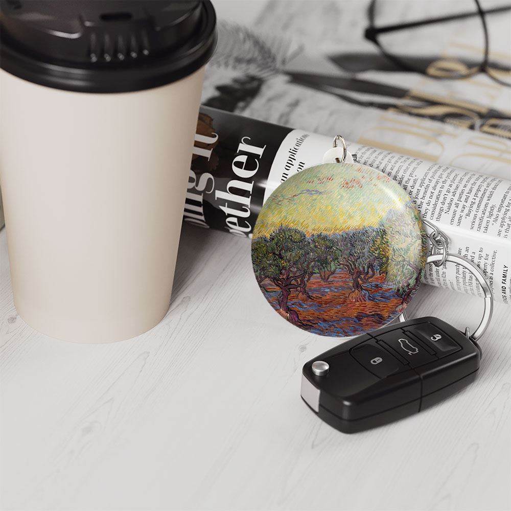 جاکلیدی نقاشی تاکستان سرخ اثر ونسان ونگوگ صرفا برای آویز کلید نیست و میتوان آن را به عنوان آویز زینتی از زیپ کیف، آیینه جلوی خودرو، درب کمد دیواری اتاق ها و… آویزان کرد.